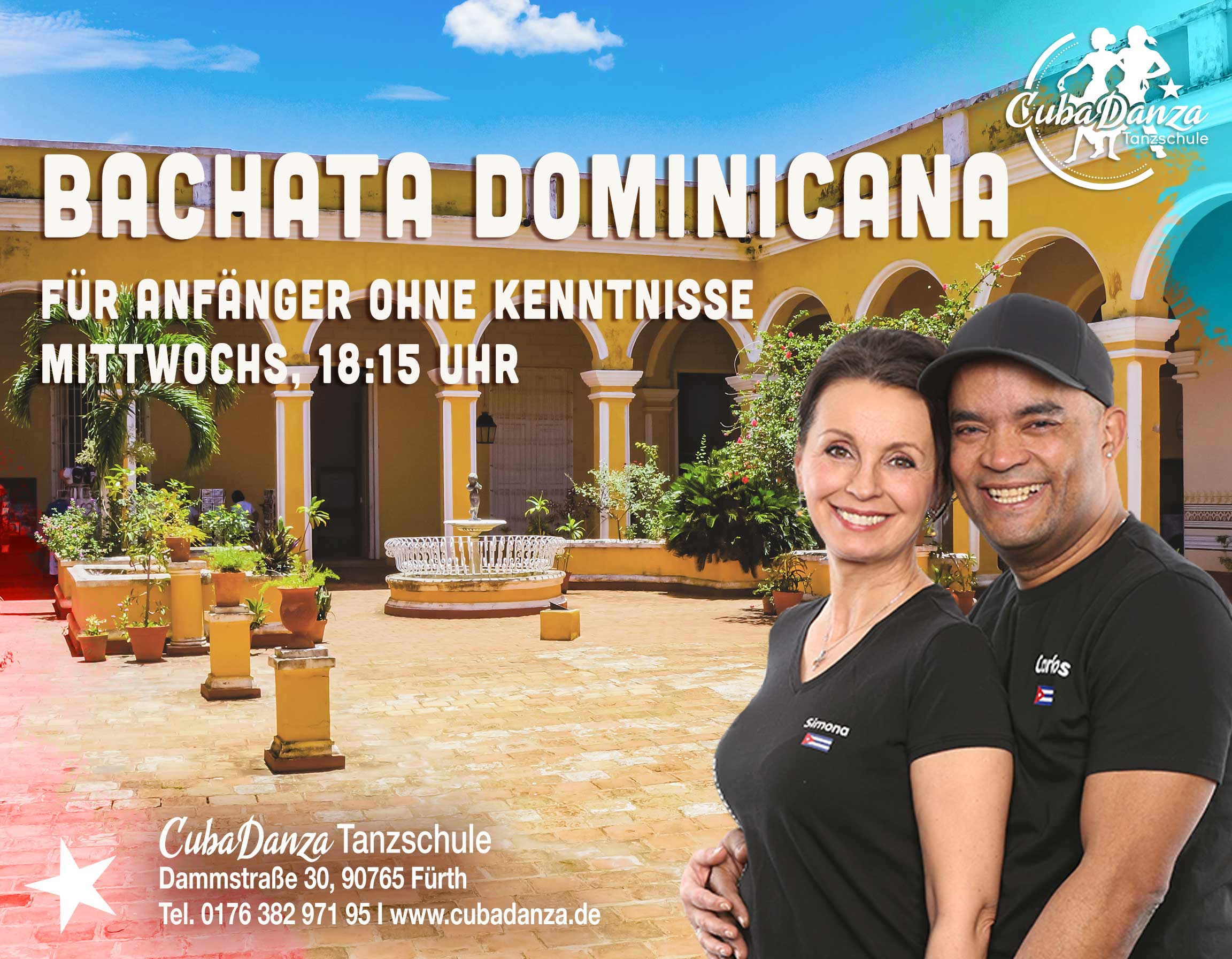 In Bachata Anfänger Kurs lernst du die Grundschritte, Drehungen, Figuren und das Feeling der Bachata. Die dominikanische Bachata zeichnet sich durch ihre Intensität, Eleganz und Sinnlichkeit, die enge Verbindung zum Musikrhythmus und die fröhliche Atmosphäre aus. Es ist ein dynamischer und mitreißender Tanzstil, der viel Spaß macht und eine gute Möglichkeit bietet, sich zu bewegen, zu entspannen und neue Leute kennenzulernen.